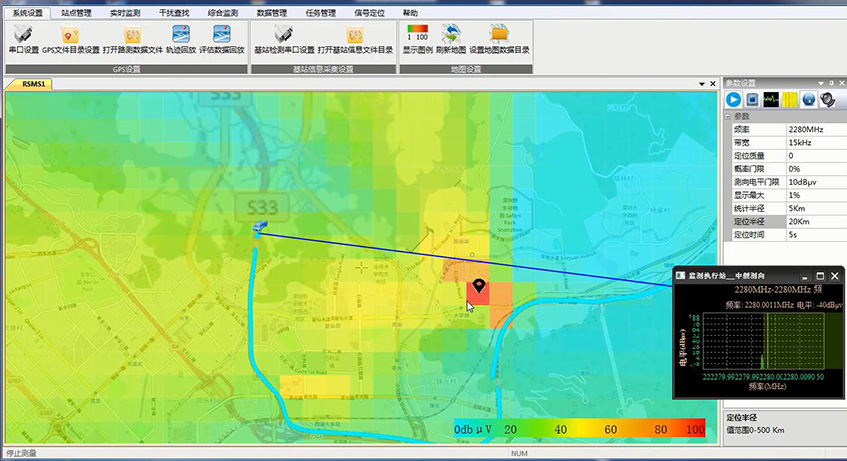 Ø 基于实时监测或测向数据自动生成发射源位置概率分布,实时语音监听,智能引导监测车快速逼近收敛于发射源;