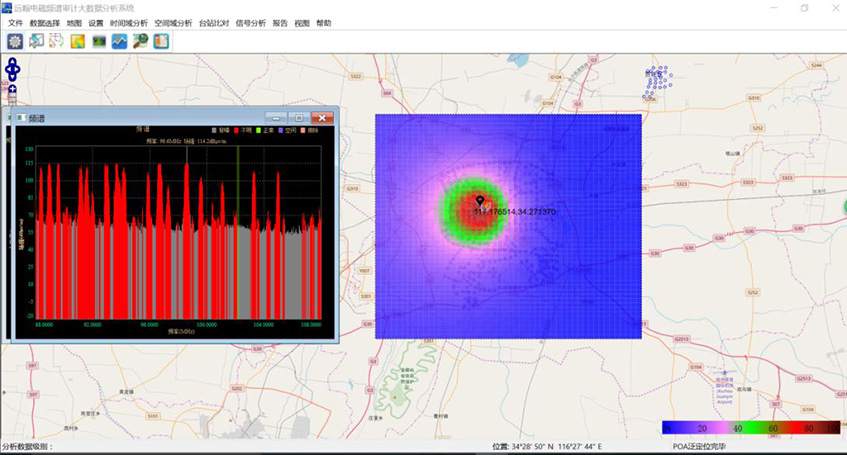 远翰科技在吸纳国际先进技术、总结频谱使用评估经验、结合国内实际需求,组织科技精英攻坚克难、大胆创新、攻破了多个关键技术,首次在大数据基础上实现了场强泛定位和测向泛定位技术。该技术在多个省频谱使用评估数据基础上进行测试、验证,取得了较好的效果。为广大无线电管理人员快速实现干扰查处、非法电台定位、台站数据核对提供了高效、实用的有力工具,解决了长期困扰无线电执法人员信号发射源定位困难的问题。